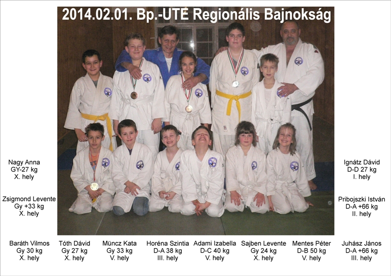 2014. február 1-jén került megrendezésre Budapesten az UTE Regionális judo verseny, melyen 13 főt indítottunk. A versenyen az alábbi eredmények születtek: