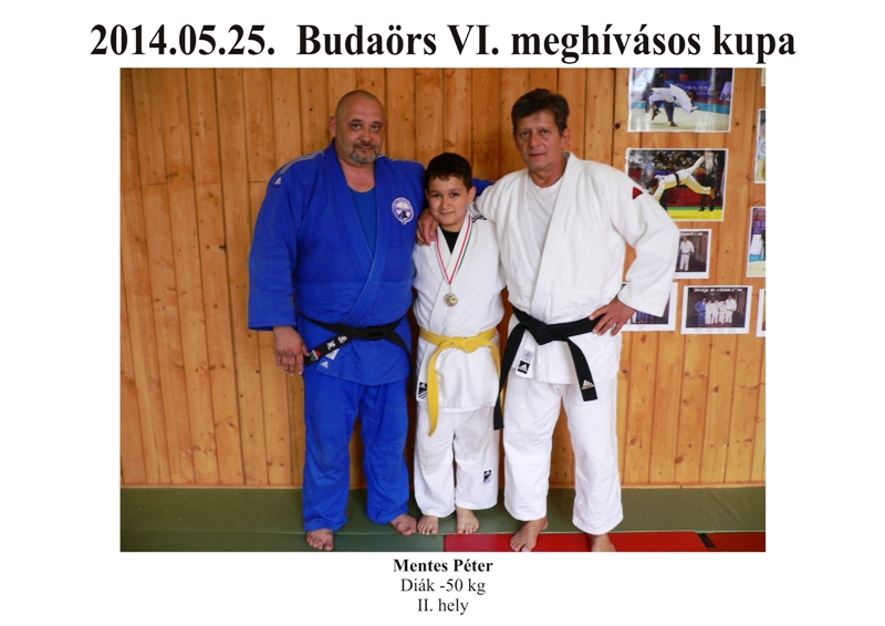 2014. május 25-én Budaörsön került megrendezésre a VI. Budaörs Kupa, ami meghívásos regionális verseny volt. Szakosztályunk 1 főt indított, Mentes Péter diák versenyzőt, aki korosztályában – 50 kg-ban II. helyezést ért el. Gratulálunk neki!