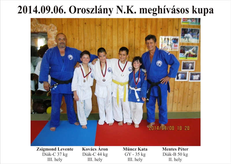 2014. szeptember 06-án került megrendezésre Oroszlányban a Nemzetközi Regionális judo verseny, ahol több mint 160 fő indult. Szakosztályunkat 4 fő képviselte a versenyen. Mentes Péter II. helyezést ért el, 4 mérkőzés folyamán 3 ippon győzelemmel és 1 wasari vereséggel, amit a bírók tévesen ítéltek meg, mivel Peti hasra fordulva érkezett a szőnyegre. Müncz Kata III. helyezést ért el, 3 mérkőzéssel és 1 gyönyörű ippon győzelemmel. Zsigmond Levente III. helyezést, valamint Kovács Áron szintén  III. helyezést értek el, aki kezdő judoka létére bátran küzdött.