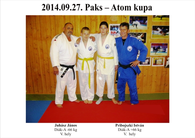 2014. szeptember 27-én került megrendezésre Pakson a „Kis” Atomkupa. Szakosztályunkból két fő indult ezen az eléggé rangos és nagy létszámú versenyen. Küzdelmeik kiegyensúlyozottak és technikásak voltak. A felkészültségük meglátszott a versenyen elért eredményeik alapján is. Sokat edzettek, dolgoztak, készültek erre a versenyre. Örülünk sikereiknek.