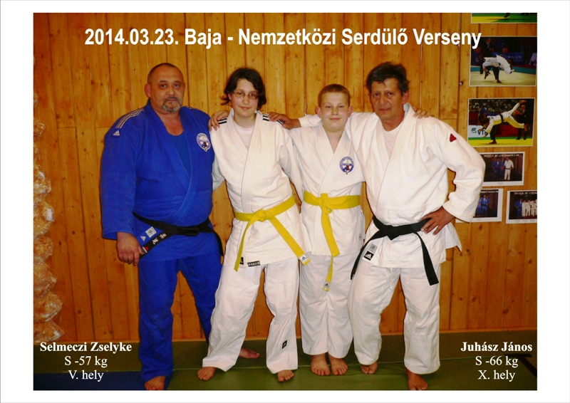 2014. március 23-án Baján került megrendezésre a Nemzetközi Serdülő Verseny. A serdülő versenyt több ország részvételével rendezték meg. Selmeczi Zselykét rögtön az első mérkőzésén egy külföldi lánnyal sorsolták össze, ahol a tiszta küzdelmi időt végigjátszva egyiküknek sem sikerült értékelhető akciót elérniük. Sajnos a bírók úgy döntöttek, hogy szakosztályunk versenyzőjét megintik, és így shido büntetéssel a külföldi lányt hirdették ki győztesnek Zselykével szemben. Ez a mérkőzés rányomta bélyegét a többi küzdelmére is. Juhász János is méltán helytállt, mivel diák „A” korosztályos versenyzőként elindult és a végletekig harcolt idősebb társaival. Ügyesek voltak.