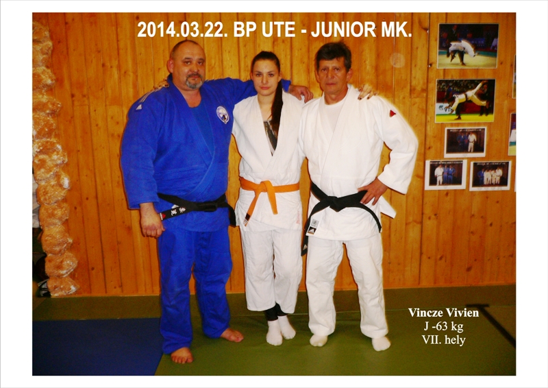 2014. március 22-én Budapesten került megrendezésre az UTE-Junior MK. A szakosztályunk 1 főt nevezett a versenyre. A súlycsoportban összesen 12-en voltak, köztük Ifi világbajnok Gercsák Szabina, magyar bajnok Polyák Krisztina, stb. Ez is mutatja, hogy Vincze Vivien az erős mezőnyhöz képest helytállt, és harcosan küzdött, így VII. helyen, pontszerzőként zárta a versenyt. Gratulálunk neki!