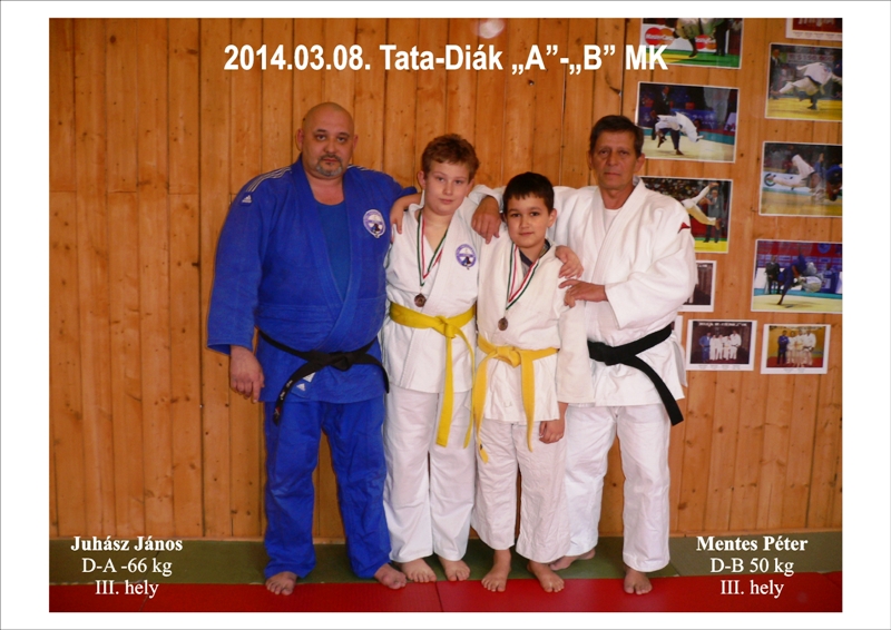 2014. március 8-án került megrendezésre Tatán a Diák „A” és „B” korosztály MK Versenye, ahol több, mint 300 fő judoka vett részt. Szakosztályunk 2 főt indított, akik sikeresen a döntőig „beverekedték” magukat, és így mindketten bronzérmet szereztek. Gratulálunk nekik és további sok sikert kívánunk!