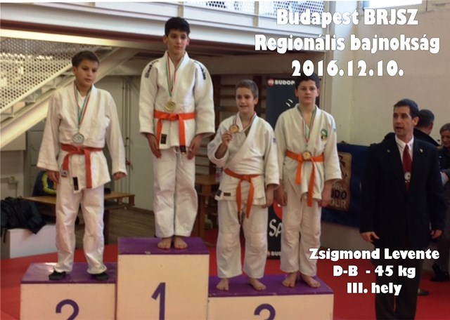 Kecskeméten került megrendezésre 2016.10.08-án a Regionális Csapatbajnokság, ahol Diák "B" korosztályban -45 kg-os súlycsoportban a Budapesti Régió csapatában szerepelt Zsigmond Levente versenyzőnk is. A Budapesti Régió csapata I. helyezést ért el a versenyen, a kiemelkedő teljesítményéért gratulálunk Leventének!