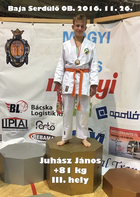 2016. november 26-án Baján került megrendezésre a Serdülő Országos Bajnokság, amelyen +81 kg súlycsoportban III. helyezést ért el Juhász János versenyzőnk. Janinak gratulálunk!