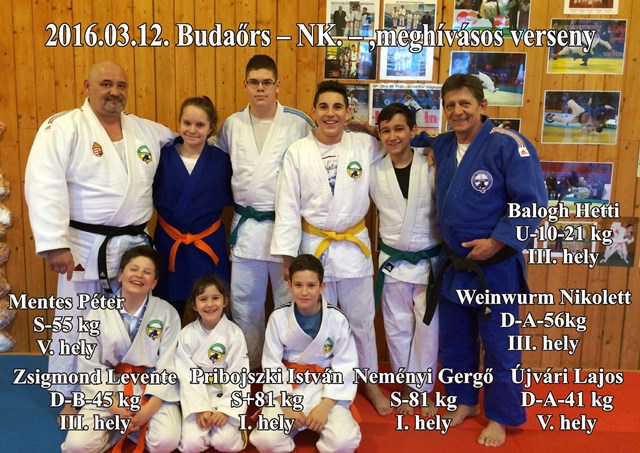 2016. március 12-én került megrendezésre a Budaörs kupa nemzetközi, meghívásos judoverseny, melyen a következő eredmények születtek: