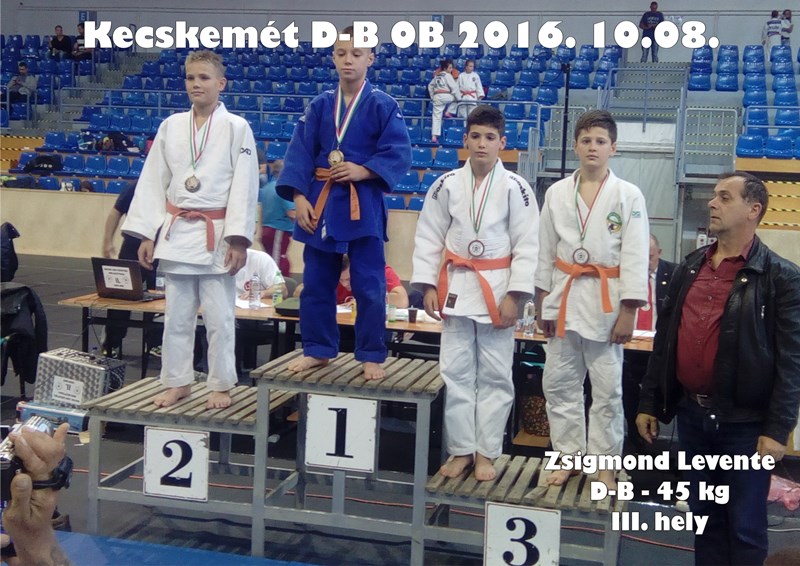 Kecskeméten került megrendezésre 2016.10.08-án az Országos Bajnokság, ahol Diák "B" korosztályban -45 kg-os súlycsoportban Zsigmond Levente versenyzőnk harmadik helyezést ért el. Gratulálunk a teljesítményéhez!