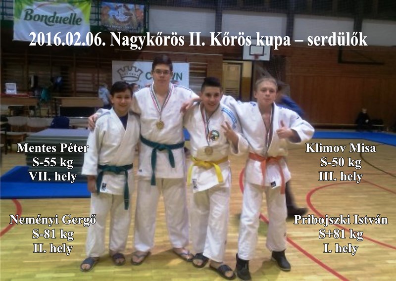 Eredményeink: I. helyezettek: Újvári Lajos, Zsigmond Levente, Klimov Mihály. II. helyezettek: Weinwurm Nikolett, Mentes Péter. VII. helyezett: Illés Gergő. Az egyesületek pontversenyében az erdőkertesi judosok az előkelő 8. helyen végeztek!