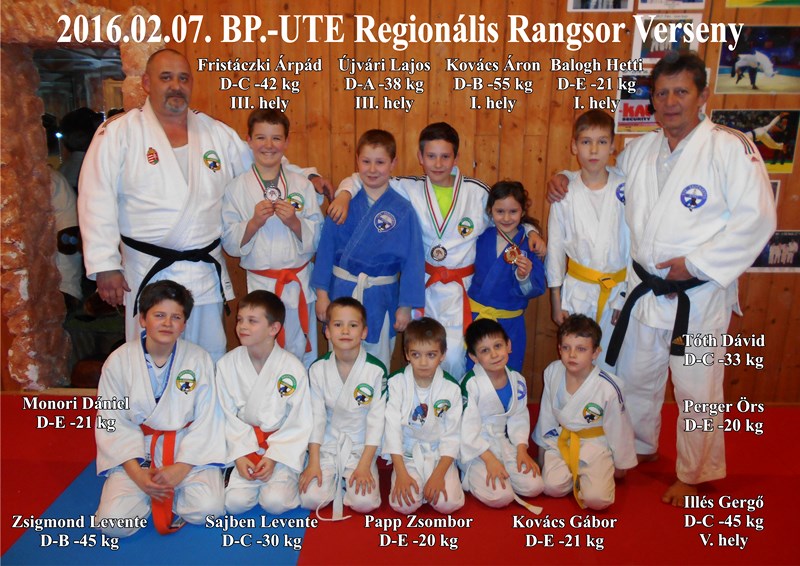 A 2016. február 6-án Nagykőrösön megrendezésre kerülő II. Kőrös Kupa- Serdülők versenyen és a február 7-én Budapesten megrendezésre kerülő UTE Regionális Rangsor versenyen az alábbi eredményeket értük el: