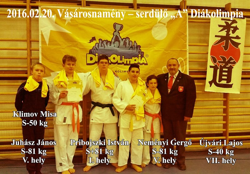 2016. február 20-án került megrendezésre Vásárosnaményban a Serdülő „A” Diákolimpia, ahol judokáink az alábbi eredményeket érték el: