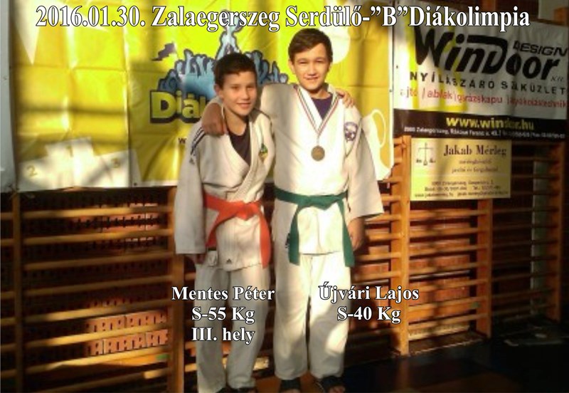 2016. január 30-án került megrendezésre Zalaegerszegen a Serdülő „B” Diákolimpia, hol - 55 kg súlycsoportban Mentes Péter III. helyezést ért el, - 40 kg súlycsoportban Újvári Lajos is szépen küzdött. Gratulálunk nekik!