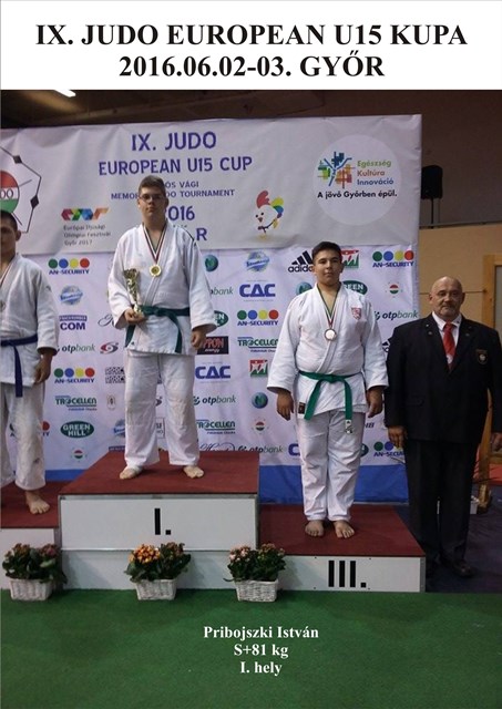 2016. június 03-án Győrben került megrendezésre a Serdülő Európa Kupa, ahol a + 81 kg-os súlycsoportban Pribojszki István versenyzőnk első helyezést ért el! Ezzel biztosan vezeti a korosztálya és súlycsoportja rangsorát. Pistinek gratulálunk!